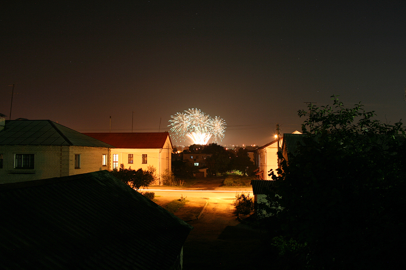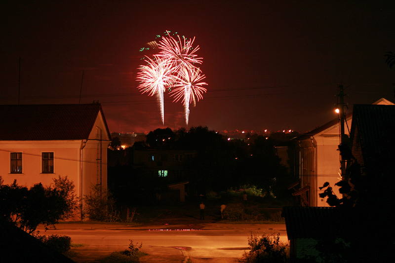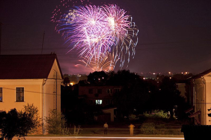 До места проведения фестиваля я по понятным причинам не добрался... )) Но снимки фейерверков я всё-таки сделал - поднялся на площадку недалеко от моего дома, откуда можно было наблюдать за происходящим.